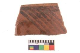 | Description / विवरण | Specimen of potsherd with black decorative geometric painting. Type Black on Red Ware . |