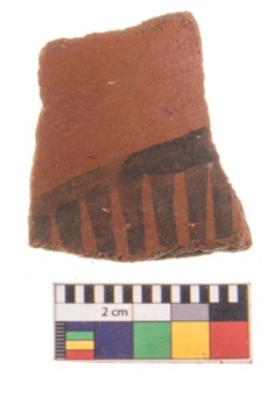 | Description / विवरण | Specimen of potsherd with black decorative geometric painting. Type Black on Red Ware . |