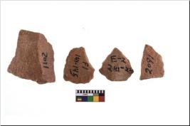 | Description / विवरण | It made up of a short flakes with sides trimmed. Marks of secondary flaking are present on the both the faces. It rained pebbly cortex on one side and irregular thin edge on the other. The dorsal is relatively flat. A patch of cortex near the section which is slanting to the dorsal .It is sub rectangular in shaped. |