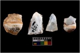 | Description / विवरण | There are n-4 of intact cores. Out of them 1 is made up Chalcedony and 3 are made up of Chert.There are multidirectional irregular dominant scar pattern on both dorsal and ventral face of the cores. |