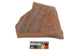 | Description / विवरण | Specimen of black on red ware with decorative geometric Outcurved lines painting. |