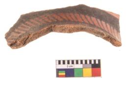 | Description / विवरण | Specimen of potsherd with black decorative geometric painting. Type Black on Red Ware . |