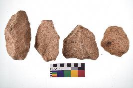 | Description / विवरण | There are n-4 of utilized flake cores. There are multidirectional irregular dominant scar pattern on both dorsal and ventral face of the cores. |