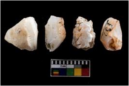 | Description / विवरण | There are n-4 of intact cores. Out of them 1 is made up Chalcedony and 3 are made up of Chert.There are multidirectional irregular dominant scar pattern on both dorsal and ventral face of the cores. |
