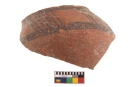 | Description / विवरण | Specimen of black on red ware with decorative geometric Outcurved lines painting. |
