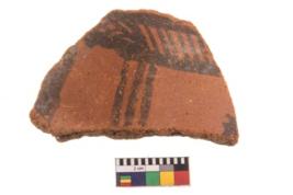 | Description / विवरण | Specimen of potsherd with black decorative geometric painting. Type Black on Red Ware . |