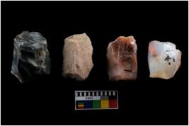 | Description / विवरण | There are n-4 of intact cores. Out of them 1 is made up Chalcedony and 3 are made up of Chert.There are multidirectional irregular dominant scar pattern on both dorsal and ventral face of the cores. |