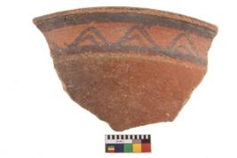 | Description / विवरण | Specimen of potsherd with black decorative geometric painting. Type Black on Red Ware . |