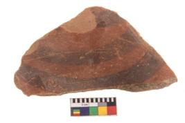 | Description / विवरण | Specimen of potsherd with black decorative geometric painting. Type Black on Red Ware . |