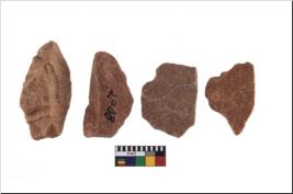 | Description / विवरण | It made up of a short flakes with sides trimmed. Marks of secondary flaking are present on the both the faces. It rained pebbly cortex on one side and irregular thin edge on the other. The dorsal is relatively flat. A patch of cortex near the section which is slanting to the dorsal .It is sub rectangular in shaped. |