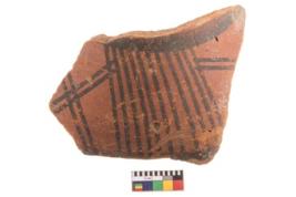 | Description / विवरण | Specimen of potsherd with black decorative geometric painting. Type Black on Red Ware . |