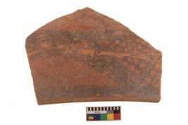 | Description / विवरण | Specimen of black on red ware with decorative geometric A row of latticed diamonds set in horizontal bands but having groups of oblique lines at intervals painting. |