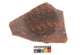 | Description / विवरण | Specimen of potsherd with black decorative geometric painting. Type Black on Red Ware . |