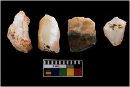 | Description / विवरण | There are n-4 of intact cores. Out of them 1 is made up Chalcedony and 3 are made up of Chert.There are multidirectional irregular dominant scar pattern on both dorsal and ventral face of the cores. |