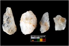 | Description / विवरण | There are n-4 of utilized worked flake cores. Some of them have bulge of percussion and some are flat flakes. |