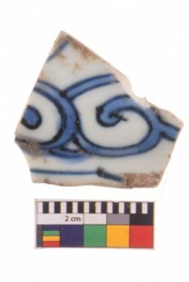 | Description / विवरण | A specimen of a glazed ware potsherd with beautiful bluish painting over it. |