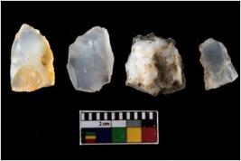 | Description / विवरण | There are n-4 of intact cores. Out of them 1 is made up Chalcedony and 3 are made up of Chert.There are multidirectional irregular dominant scar pattern on both dorsal and ventral face of the cores. |