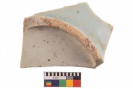 | Description / विवरण | A specimen of a glazed ware potsherd; bottom portion . |