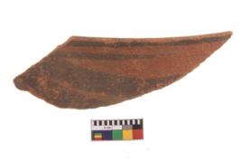 | Description / विवरण | Specimen of black on red ware with decorative geometric Its decorated with two horizontal bands with sets of triple arches painting. |