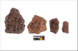 | Description / विवरण | It made up of a short flakes with sides trimmed. Marks of secondary flaking are present on the both the faces. It rained pebbly cortex on one side and irregular thin edge on the other. The dorsal is relatively flat. A patch of cortex near the section which is slanting to the dorsal .It is sub rectangular in shaped. |