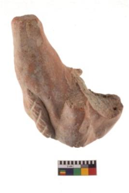 | Description / विवरण | Fragment of an handmade bull figurine made with fine clay. Its head is missing. It is red ware, well fired and smooth in texture. |