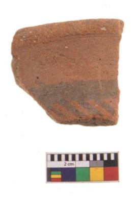 | Description / विवरण | Specimen of black on red ware with decorative geometric Outcurved lines painting. |