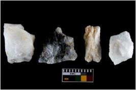 | Description / विवरण | There are n-4 of utilized worked flake cores. Some of them have bulge of percussion and some are flat flakes. |