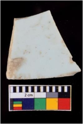 | Description / विवरण | A specimen of a glazed ware potsherd. |
