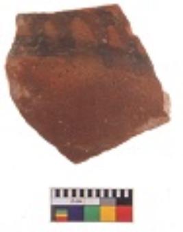 | Description / विवरण | Specimen of black on red ware with decorative black pigment. |