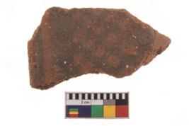| Description / विवरण | Specimen of black on red ware with decorative geometric Two horizontal bands containing criss-cross pattern painting. |