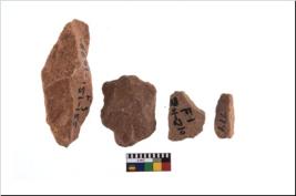 | Description / विवरण | It made up of a short flakes with sides trimmed. Marks of secondary flaking are present on the both the faces. It rained pebbly cortex on one side and irregular thin edge on the other. The dorsal is relatively flat. A patch of cortex near the section which is slanting to the dorsal .It is sub rectangular in shaped. |