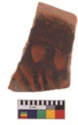 | Description / विवरण | Specimen of black on red ware with decorative black pigment. |
