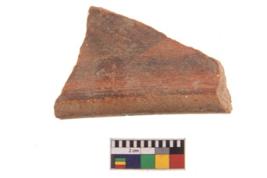 | Description / विवरण | Specimen of black on red ware with decorative geometric A row of latticed diamonds set in horizontal bands but having groups of oblique lines at intervals painting. |