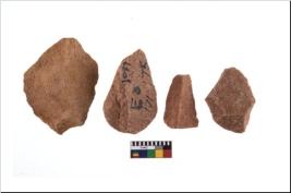 | Description / विवरण | It made up of a short flakes with sides trimmed. Marks of secondary flaking are present on the both the faces. It rained pebbly cortex on one side and irregular thin edge on the other. The dorsal is relatively flat. A patch of cortex near the section which is slanting to the dorsal .It is sub rectangular in shaped. |