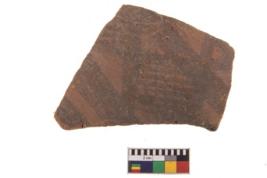| Description / विवरण | Specimen of black on red ware with decorative geometric A row of latticed diamonds set in horizontal bands but having groups of oblique lines at intervals painting. |