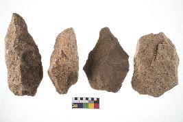 | Description / विवरण | There are n-4 of utilized flake cores. There are multidirectional irregular dominant scar pattern on both dorsal and ventral face of the cores. |