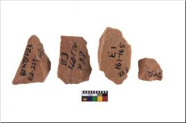 | Description / विवरण | It made up of a short flakes with sides trimmed. Marks of secondary flaking are present on the both the faces. It rained pebbly cortex on one side and irregular thin edge on the other. The dorsal is relatively flat. A patch of cortex near the section which is slanting to the dorsal .It is sub rectangular in shaped. |