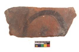 | Description / विवरण | Specimen of black on red ware with decorative geometric Outcurved lines painting. |