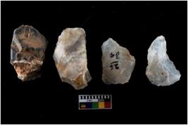 | Description / विवरण | There are n-4 of intact cores. Out of them 1 is made up Chalcedony and 3 are made up of Chert.There are multidirectional irregular dominant scar pattern on both dorsal and ventral face of the cores. |
