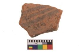 | Description / विवरण | Specimen of black on red ware with decorative geometric parallel lines painting. |