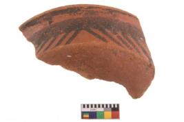 | Description / विवरण | Specimen of potsherd with black decorative geometric painting. Type Black on Red Ware . |