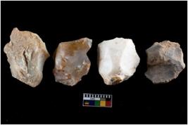 | Description / विवरण | There are n-4 of intact cores. Out of them 1 is made up Chalcedony and 3 are made up of Chert.There are multidirectional irregular dominant scar pattern on both dorsal and ventral face of the cores. |