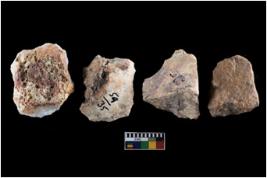 | Description / विवरण | There are n-4 of intact cores. Out of them 1 is made up Chalcedony and 3 are made up of Chert.There are multidirectional irregular dominant scar pattern on both dorsal and ventral face of the cores. |