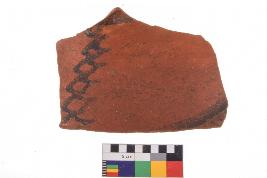 | Description / विवरण | Specimen of potsherd with decorative painting, Type Black on Red Ware . |