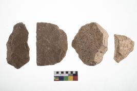 | Description / विवरण | There are n-4 of utilized flake cores. There are multidirectional irregular dominant scar pattern on both dorsal and ventral face of the cores. |