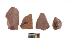 | Description / विवरण | It made up of a short flakes with sides trimmed. Marks of secondary flaking are present on the both the faces. It rained pebbly cortex on one side and irregular thin edge on the other. The dorsal is relatively flat. A patch of cortex near the section which is slanting to the dorsal .It is sub rectangular in shaped. |