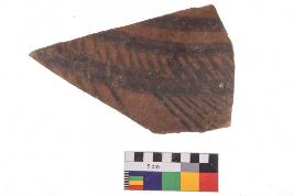 | Description / विवरण | Specimen of potsherd with decorative geometric Linear painting, Type Black on Red Ware . |