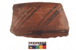 | Description / विवरण | Specimen of black on red ware with decorative black pigment. |