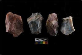 | Description / विवरण | There are n-4 of intact cores. Out of them 1 is made up Chalcedony and 3 are made up of Chert.There are multidirectional irregular dominant scar pattern on both dorsal and ventral face of the cores. |