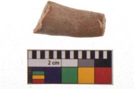| Description / विवरण | Fragment of an handmade horn of bull figurine made with fine clay. Its head is missing. It is red ware, well fired and smooth in texture. |